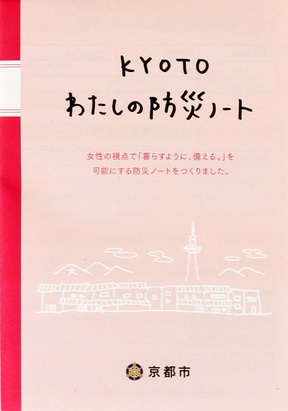 『KYOTOわたしの防災ノート』は、災害時の経験や対処法、女性が選んだ防災グッズ等を紹介するほか、災害時に必要な情報を書き込めるようになっています。